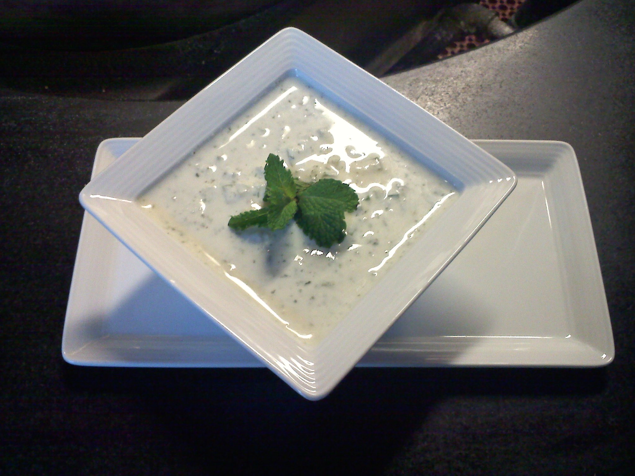 Chop the cucumbers fine with skin on. Let them stand for 30 minutes, then drain excess water. Combine the finely chopped cucumber, mint, garlic, yogurt and salt in a mixing bowl. Mix gently, with a wooden spoon, until the mixture is smooth. (Do not use a blender or food processor.) Then pour into serving bowl and garnish with mint and chill.