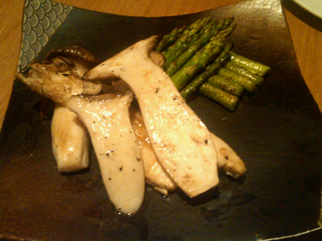 The first thing you should know about Mr. Robata is that it’s right next door to Flash Dancers, “A Gentleman’s Club.” That’s what is says on the strip club’s sign anyway. This did not bode well. I was early for my reservation, so I stood outside, watching a few seedy characters pass in and out of Flash Dancers. (The ones on their way out seemed much happier than the ones on their way inside.) If my friend’s cell phone hadn’t run out of batteries, I probably would’ve aborted the plan and gone elsewhere. We decided to press our luck and hope for the best. Just imagine someone plopped a stylish, yet serene Japanese restaurant down next to a strip club and you’ve got the idea. There’s a long, blonde wood robata-cum-sushi counter where you can either sit in front of the sushi chef or the robata grill. Now you don’t see robata grills (robatayaki) that specialize in sushi, or at least ones that do both well stateside. That made me nervous. While most people (or the sensible ones anyway) would steer clear of the sushi, I consider the presence of a sushi bar a challenge. I mean, if you’re going to try be “two restaurants in one,” you ought to know what you’re doing.