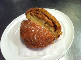 be the fried peanut butter and banana sandwich (pictured right), which is conveniently available during brunch and a wonderful cure for a hangover. What happens when you fry a pb & j sandwich? The result is crispy bread oozing with warm peanut butter and